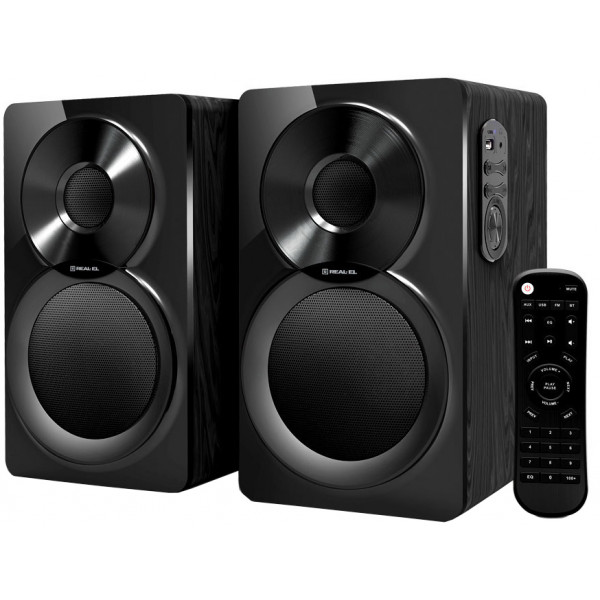 Двосмугова акустична система REAL-EL S-450 має сучасний елегантний дизайн із закругленими бічними гранями, які надають їй особливого шарму. Завдяки потужному підсилювачу вбудованому в дерев'яний корпус, а також динамікам низьких і високих частот REAL-EL S-450 докладно та реалістично відтворює весь спектр частот. На бічній панелі колонки розташований зручний блок керування відтворенням музики та роз'єм для USB Flash. Акустична система має вбудований Bluetooth-модуль, FM-радіо та програвач аудіофайлів. Для додаткового комфорту в комплекті є зручний пульт дистанційного керування та роз'єм для підключення навушників.