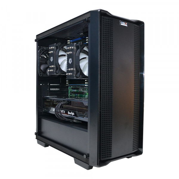 Встановлено відеокарту GeForce RTX 4070 12GB. Великий обсяг швидкої відеопам'яті чудово підійде для роботи з великими проєктами. А потужний GPU з 5888 ядрами NVIDIA CUDA на архітектурі Ada Lovelace - це новітні технології, що у поєднанні з драйверами Studio забезпечує революційну продуктивність під час трасування променів і роботи з нейронною графікою на основі II. Рендеринг на такій відеокарті відбувається досить швидко, ну а ціна відеотракту на цей момент дасть змогу сміливо сказати - ТОП за свої гроші!