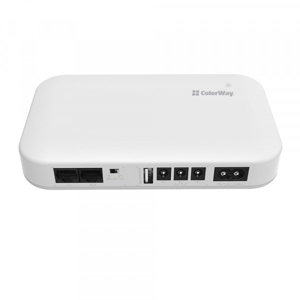 Міні ДБЖ ColorWay ідеальний вибір для забезпечення безперебійного живлення ваших важливих пристроїв, таких як роутери, модеми, відеокамери та інші девайси. Компактний, але потужний, цей пристрій гарантує стабільне з єднання з інтернетом та безпеку навіть під час відключення основного живлення. Особливості Функція POE: ДБЖ оснащений Power over Ethernet, що дозволяє передавати електроенергію через роз єм RJ45 з напругою 15 і 24 В, забезпечуючи живлення пристроїв, розташованих за межами приміщення, без необхідності прокладати додаткові кабелі. Різноманітність вихідної напруги: Підтримка кількох варіантів вихідної напруги та струму: POE: 24V/0.9A (19W), POE: 15V/1.3A (19W), DC: 5V/1.8A (9W), 9V/1.8A (17W), 12V/1.4A (17W), USB: 5V/2A. Загальна вихідна потужність 21W Max. Вбудована батарея великої ємності: Li-ion батарея на 10000 мАг забезпечує до 10 годин автономної роботи, що дозволяє вашим пристроям працювати безперебійно навіть під час тривалих перебоїв електроенергії. Швидке заряджання: Повний заряд акумулятора до 100% всього за 2 години. Індикатор зарядженості: Зручний індикатор стану батареї для контролю рівня заряду. Функція повербанку: Завдяки USB-порту, цей ДБЖ також може використовуватись як повербанк для зарядки смартфонів та інших гаджетів. Захист та безпека: Вбудований мікропроцесорний контролер забезпечує захист від перевантаження, короткого замикання, перезаряду та перерозряду, що гарантує надійну роботу пристрою. Інтуїтивне керування: Просте підключення без попередніх налаштувань та чітке позначення інтерфейсів забезпечують легкість у використанні. Автоматичний та ручний запуск: Пристрій автоматично запускається при відновленні живлення або може бути увімкнений вручну. Компактність та мобільність: Легкий та компактний дизайн дозволяє легко переносити ДБЖ та використовувати його будь-де. Безперервність роботи: Перехід з живлення від мережі на акумулятор та назад відбувається без перезавантаження підключеного обладнання. Холодний старт: Можливість увімкнення пристрою без підключення до мережі живлення. Комплектація 1 x Міні UPS 10000мАч 1 x Шнур живлення (розгалужувач) для підключення до 2 пристроїв DC 5.5x2.1 1 x Шнур живлення 220В