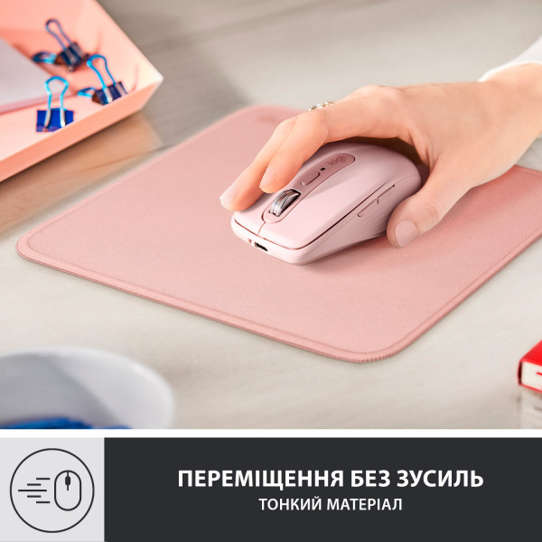 Килимок для миші Logitech Mouse Pad серія Studio М який килимок для миші, що забезпечує комфортне ковзання без жодних зусиль. Без зусиль виконуйте безліч дій Logitech представляє м який та протиковзний килимок для миші, що забезпечує безперебійну роботу на новому рівні. Килимок Logitech Mouse Pad, виготовлений із високоякісних матеріалів, забезпечує максимальний комфорт та плавність ковзання вашої улюбленої миші Logitech. Плавне переміщення без шуму Гладка текстильна поверхня з тонким плетінням зменшує тертя та забезпечує плавне безшумне ковзання миші для комфортної роботи як в офісі, так і вдома. Захист від проникнення вологи Килимок Logitech Mouse Pad має вологозахищене покриття, що дає змогу йому не вбирати випадково розлиту рідину. Ви можете просто витерти її вологою серветкою. Ретельно відібрані матеріали Протиковзна основа виготовлена з гуми, а м яка, приємна на дотик текстильна поверхня та внутрішній шар з переробленого поліестеру (цей матеріал одержують із використаних пластикових пляшок). Плавний рух. Без ковзання Завдяки м якій поверхні та текстильному покриттю килимка миша може переміщатися по ньому без жодних зусиль. Крім того, гумова протиковзна основа запобігає його ковзанню на столах, виготовлених із будь-якого матеріалу, хай що відбувається. Довговічність як додаткова перевага Краї килимка оброблені з використанням плоского шва, щоб забезпечити довговічність та захист від зношування.