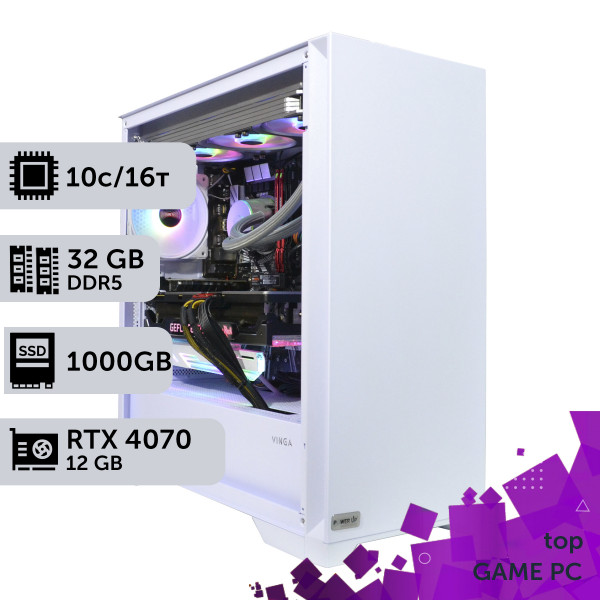 Встановлена відеокарта NVIDIA GeForce RTX 4070 є потужним графічним пристроєм з 12 гігабайтами відеопам'яті та передовими технологіями, призначеними спеціально для геймерів. Ця відеокарта базується на архітектурі Ada Lovelace і підтримує технологію DLSS 3.0, яка забезпечує стабільні високі частоти кадррозмір навіть у високороздільних іграх з роздільною здатністю 2K, досягаючи найвищого рівня продуктивності. З 5888 ядрами CUDA останнього покоління геймплей залишається плавним і комфортним навіть на максимальних налаштуваннях графіки. Ця відеокарта забезпечує відмінну динаміку гри і дозволяє насолоджуватися іграми в їхній повній славі.