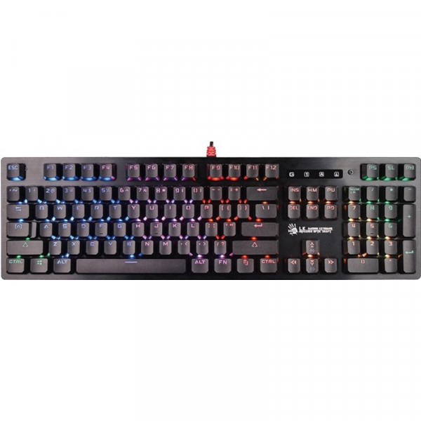 A4Tech Bloody B820R USB - найшвидша ігрова клавіатура в світі з механічними перемикачами на ігрових клавішах. Технологія Light Strike Інноваційна технологія LK (Light Strike) використовує оптичні перемикачі, що забезпечують неперевершене час відгуку 0.2 мс! На 25% більше швидке натискання клавіш Хід спрацьовування - з відстані 3 мм, що на 25% швидше, ніж у металевих перемикачів (у звичайних металевих перемикачів хід спрацьовування починається з відстані 4 мм). Ніяких затримок! Реагує на світових швидкостях без затримок (звичайні металеві перемикачі мають час відгуку 18-30 мс). Інноваційна технологія "Long-Lasting" Технологія "Long-lasting" створює звук при друку, який не зникне через кілька місяців активного використання. Унікальна довговічність Термін служби - більше 100 млн натискань (звичайні металеві перемикачі легко зношуються і окислюються). Персоналізація RGB-підсвічування Персоналізація має 3 індивідуальних режиму підсвічування з підтримкою до 16.8 млн. Колірних варіантів. 6 ефектів RGB-підсвічування 6 типів RGB-підсвічування встановлені в клавіатурі за замовчуванням. Щоб змінити тип підсвічування, натисніть "Fn" + "F12". Алюмінієва панель Верхня панель виконана з алюмінієвого сплаву, що забезпечує міцність і стійкість до корозії