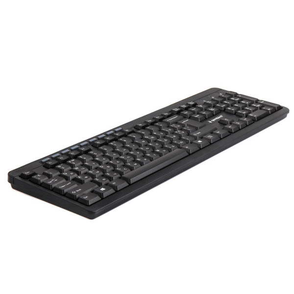 Gembird KB-UM-106 дротова клавіатура з низькопрофільним дизайном. Клавіатура обладнана цифровим блоком для зручності введення, що забезпечує легку та комфортну роботу, пов'язану з набором чисел. Виріб має розділені клавіші для максимальної зручності в користуванні та зменшення кількості помилок під час набору тексту. Gembird KB-UM-106 виготовлена в класичному офісному дизайні, механізм клавіш гарантує тихе та м'яке натискання. Під'єднати клавіатуру до пристрою можна через інтерфейс USB.