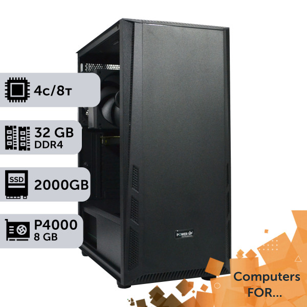 Встановлена Nvidia Quadro P4000 8GB. Професійна відеокарта середнього рівня. Відеокарти серії Quadro створювались фахівцями саме для роботи з професійним софтом, тому вони ідеально підходять для таких додатків, як Autodesk Maya, Rhino, Revit, Adobe Premiere Pro і DaVinci Resolve. Добре підходить для 3D-візуалізації, CAD-дизайну та відеомонтажу. Завдяки однослотовому дизайну легко можна встановити кілька відеокарт в одну станцію, що дозволяє збільшити обчислювальну потужність для складних завдань. Для складніших проєктів можна розглянути оновлення на більш потужні Quadro RTX 4000 або RTX 5000.