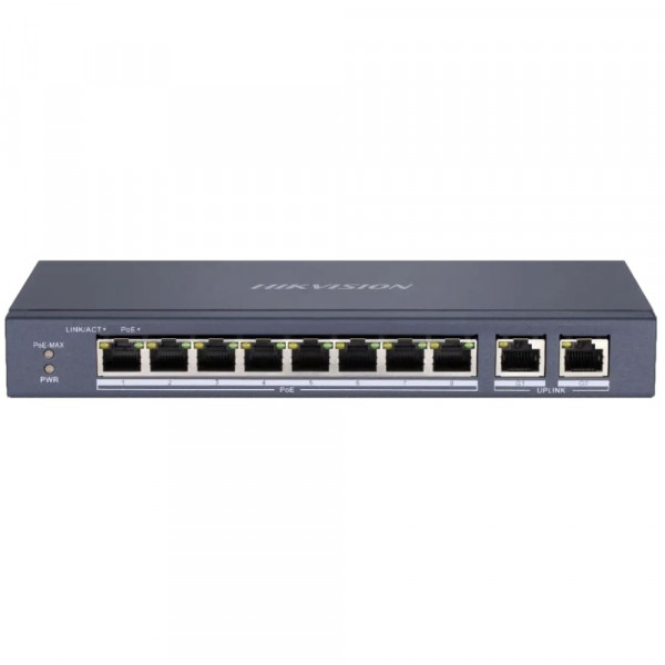 Комутатор Hikvision DS-3E0310P-E/M(B) це компактне і функціональне рішення для побудови системи відеоспостереження з підтримкою живлення PoE. Ідеально підходить для підключення IP-камер та інших мережевих пристроїв, які потребують стабільного електроживлення та передачі даних по одному кабелю. Основні характеристики та можливості Модель оснащена вісьмома портами Downlink (10/100 Мбіт/с), кожен з яких підтримує стандарти PoE та PoE+ (IEEE 802.3af/at). Сукупний енергетичний бюджет досягає 80 Вт, що дозволяє запітати до восьми пристроїв з споживанням до 30 Вт на порт. Для підключення до магістралі передбачені два гігабітних Uplink-порта (10/100/1000 Мбіт/с), які забезпечують швидку та стабільну передачу даних. Надійна робота в стандартних умовах Комутатор працює при температурі від 0 до +40 C, має компактні розміри (217,6 ? 108,5 ? 27,6 мм) і вагу всього 555 г. Пропускна здатність пристрою складає до 5.6 Гбіт/с, швидкість обробки пакетів 4.17 млн пакетів на секунду. Вбудований буфер на 4 Мбіт і MAC-таблиця на 8 тисяч записів гарантують стабільну роботу навіть при високій навантаженості. Пристрій живиться від джерела 54 В (1.2 A) і споживає від 5 до 86 Вт в залежності від підключених пристроїв. Чудовий вибір для тих, хто шукає компактний і ефективний PoE-комутатор для відеоспостереження або інших мережевих завдань.