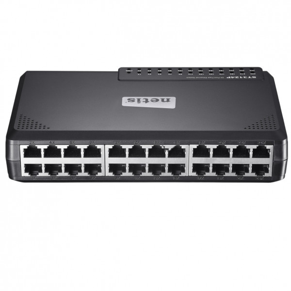 У комутатора Netis ST3124P Fast Ethernet є 24 порти RJ45 10/100 Мбіт / с з автопогодженням. Ідеально підходить для маленьких офісів і для офісів середнього розміру. Всі порти підтримують автоматичне визначення MDI / MDIX функцію, усуваючи необхідність в перехресних кабелях або портах Uplink. Комутатор Fast Ethernet з 24 портами є високопродуктивним пристроєм. Комутатор є стандартним оновленням для поліпшень вашої мережі до мережі з продуктивністю 100 Мбіт / с.