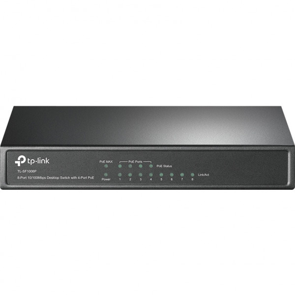 Призначення пристрою TL-SF1008P це 8-портовий 10/100 Мбіт/с настільний некерований комутатор, який не вимагає установки і має 4 портами PoE. Пристрій може автоматично визначати пристрої, які отримують харчування за стандартом IEEE 802.3 af, такі як точки доступу, IP-камери або IP-телефони. У такій ситуації електроенергія передається по одному кабелю разом з даними, дозволяючи розширювати вашу мережу в тих місцях, де відсутні електричні розетки Power over Ethernet 4 з 8 портів RJ45 з автоматичним визначенням (з 1-го по 4-й порт) підтримують технологію PoE (живлення по кабелю Ethernet). Ці порти можуть автоматично визначати та подавати живлення пристроїв на базі стандарту стандарт IEEE 802.3 af, що підтримують функцію PoE. - Захист від перевантажень TL-SF1008P оснащений функцією призначення пріоритетності, яка дозволяє захистити систему від перевантажень. Якщо потужність всіх підключених пристроїв перевищить максимально допустиму - 57 Вт, пріоритети будуть розподілені по PoE-портів таким чином, що порт з найменшим пріоритетом не буде отримувати харчування. - Функція пріоритетності портів Пріоритети розподіляються наступним чином: порт 1 > порт 2> порт 3> порт 4. Це допомагає захистити пристрій від перевантажень. В якості прикладу розглянемо ситуацію, коли до 1, 2 і 4 порту підключені пристрої потужністю 15.4 Вт (максимальна потужність на кожному порту -15.4 Вт), що споживають разом 46.2 Вт (індикатор PoE Max горить червоним). Якщо тепер включити ще одне 10-ватне пристрій у порт 3, то вихідна потужність перерозподілиться наступним чином: пристрої, підключені до портів 1 і 2, будуть використовувати по 15.4 Вт потужності, пристрій, підключений до 3-го порту, - 10 Вт, а на порт 4 харчування подаватися не буде. Простота використання TL-SF1008P легко встановлюється і простий у використанні. Завдяки настільного дизайну, високої продуктивності та якості роботи настільний комутатор TL-SF1008P - найкраще рішення для розширення вашої домашньої або офісної мережі.