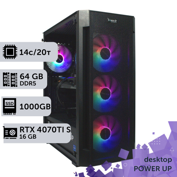 Intel Core i5 14600K (20 потоків із частотою 2,6 - 5,3 ГГц на кожне ядро). Штатна частота процесора - 2,6 ГГц, максимальна в турборежимі - 5,3 ГГц.