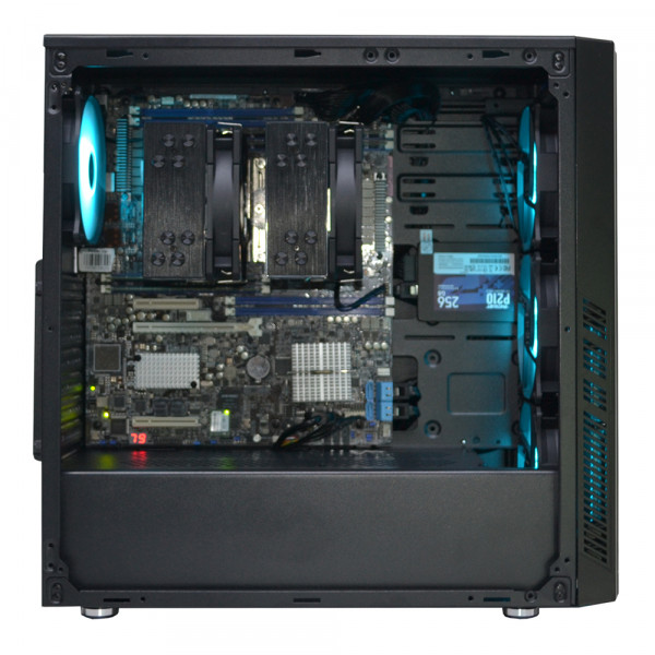 Стандарт E-АТХ. У корпусі стандарту E-ATX можливе розміщення 2х HDD 3.5 і 2х SSD 2.5. Якщо для ваших завдань потрібно більше дисків, то корпус можна змінити на формат Full ATX або Rack формату 4U. Про це можна уточнити в менеджера під час замовлення.