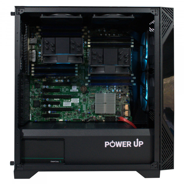 Цей сервер зібрано в стандартному E-АТХ корпусі і для його встановлення не потрібна серверна стійка, не потрібне окреме приміщення та інші спеціальні умови. Шум від роботи сервера можна порівняти з шумом звичайного комп'ютера. Відмінний варіант для підприємства або офісу, як термінального сервера, сервер для 1С бухгалтерії, для розміщення сайту. Або як машина для складних обчислень: рендеринг, симуляція тощо.