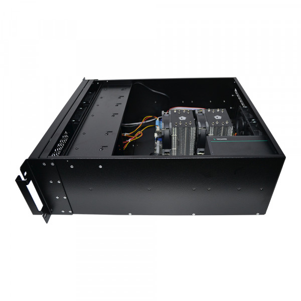 Серверний корпус призначений для двопроцесорних систем у форматі 4U зі встановленням у шафу глибиною 600 мм. Система охолодження складається з чотирьох вентиляторів 80х80х25 мм. Живлення - 1 блок живлення АТХ стандарту. Можливе встановлення до 4х дисків формату 2,5/3,5